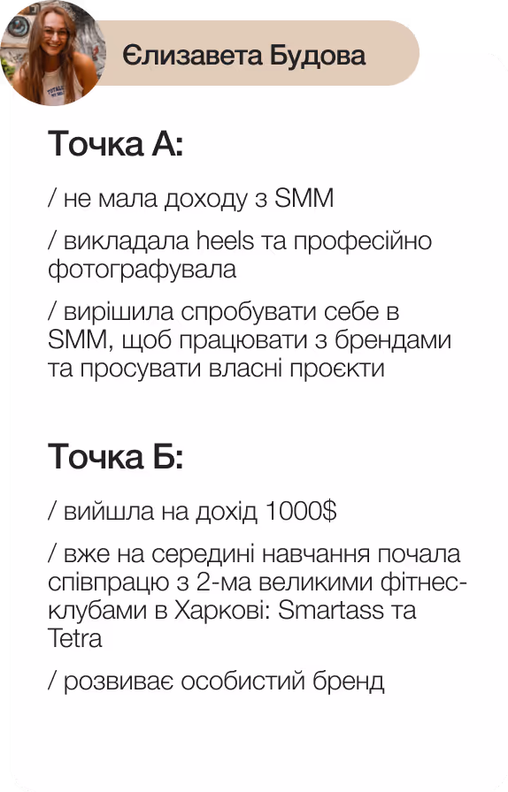 — Так, ми разом з нуля будемо проходити все, що потрібно для роботи в SMM. Покрокова структура, практична програма, трішки зусиль — і все вийде.