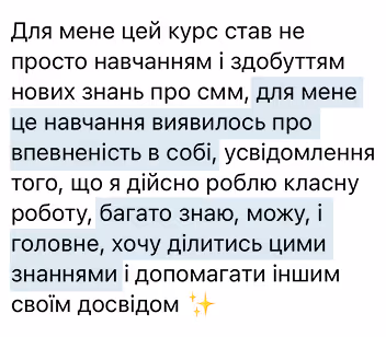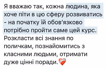 — Ми проаналізували кожен фідбек і долучили топових експертів-практиків, з якими оновили уроки згідно з запитами, додали ще більше актуальних кейсів, прикладів, трендів і підтримки. Все для того, щоб це навчання стало точкою твого росту та нових результатів.