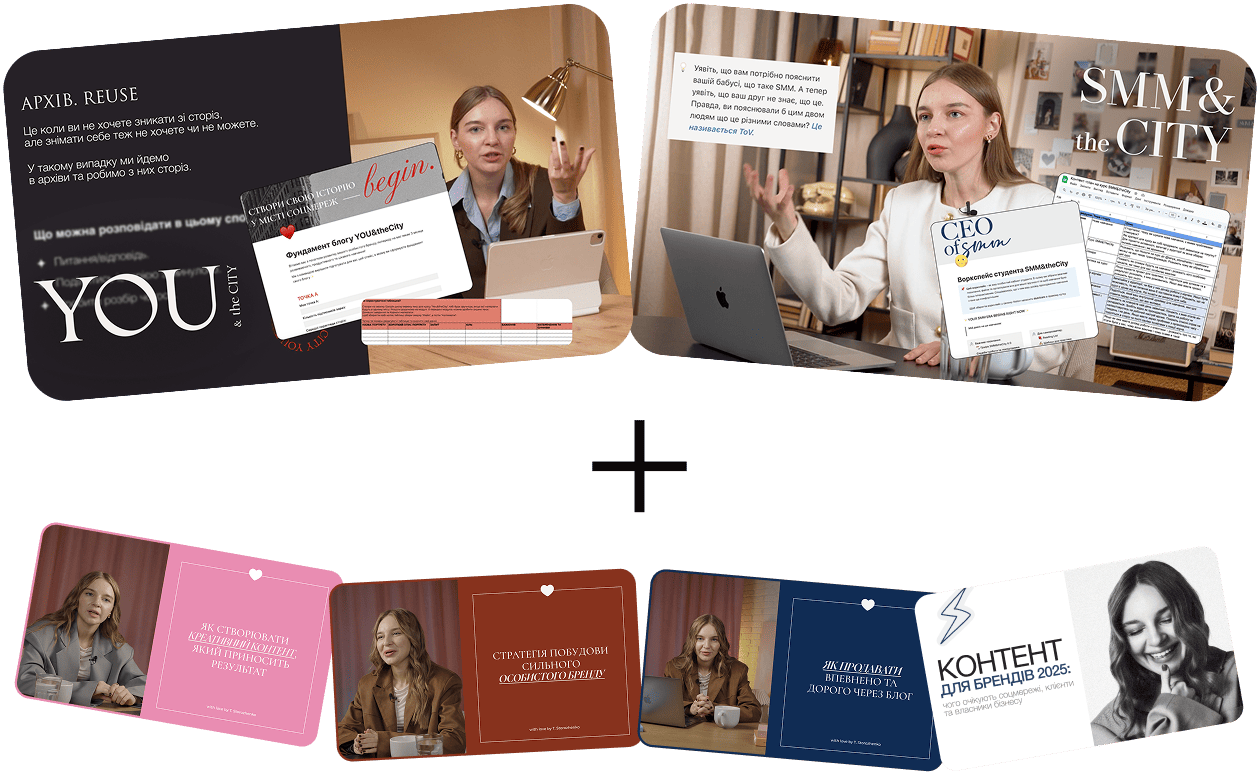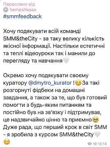 - SMM&theCity — навчання на тарифі з куратором. Тут ти комплексно навчишся працювати з соцмережами, складати SMM-стратегії з нуля та заробляти на контенті
